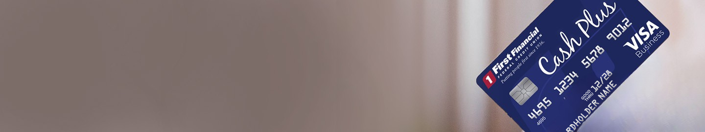 *This APR of 18% is for purchases, balance transfers, and cash advances and will vary with the market based on the Prime Rate. Subject to credit approval. Rates quoted assume excellent borrower credit history. Your actual APR may vary based on your state of residence, approved loan amount, applicable discounts and your credit history. No Annual Fees. Other fees that apply: Balance Transfer and Cash Advance Fees of 3% or $10, whichever is greater; Late Payment Fee of $35, $10 Card Replacement Fee, and Returned Payment Fee of $35. A First Financial membership is required to obtain a Visa® Business Cash Plus Credit Card and is available to anyone who lives, works, worships, volunteers, or attends school in Monmouth or Ocean Counties. A $5 deposit in a base savings account is required for credit union membership prior to opening any other account/loan.