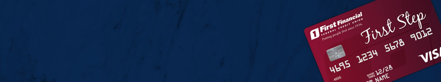 *APR varies from 17.15% to 18% for the Visa® First Step Credit Card when you open your account based on your credit worthiness. This APR is for purchases and will vary with the market based on the Prime Rate. Subject to credit approval. Rates quoted assume excellent borrower credit history. Your actual APR may vary based on your state of residence, approved loan amount, applicable discounts and your credit history. No Annual Fees. Other fees that apply: Balance Transfer and Cash Advance Fees of 3% or $10, whichever is greater; Late Payment Fee of $29, $10 Card Replacement Fee, and Returned Payment Fee of $29. A First Financial membership is required to obtain a Visa® Credit Card and is available to anyone who lives, works, worships, volunteers, or attends school in Monmouth or Ocean Counties. A $5 deposit in a base savings account is required for credit union membership prior to opening any other account/loan.